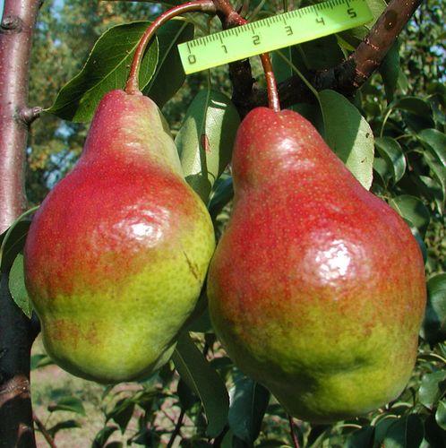 Плоды среднего и выше среднего размера, массой 130-210 г, удлиненно-грушевидные, гладкие, правильной формы. Кожица средняя, маслянистая, с восковым налетом. Окраска в момент съемной зрелости: основная зеленоватая, покровная красная по меньшей части плода; в период потребительской зрелости: основная зеленовато-желтая, покровная красная. Мякоть кремовая, средней плотности, нежная, полумаслянистая, сочная с незначительным количеством грануляций, вкус кисловато-сладкий.